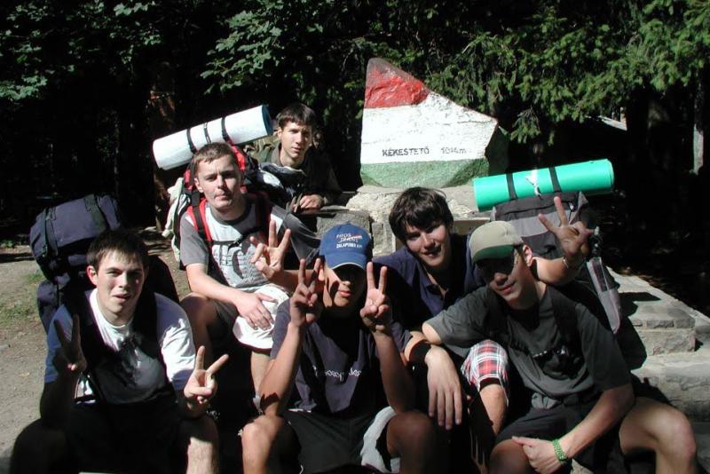 Ősszel a Mátrát céloztuk meg. Mátrafüreden szálltunk le a buszról kb. este tíz körül. A táborhelyet a térkép alapján választottam: forrás, padok, távol a falutól. Tökéletes! A valóságban azonban egy "aprócska" probléma akadt vele! Andezitbe vágták a pihenőt, így sátorverésre aligha volt alkalmas. Új helyet kellett keresni. Mivel idefelé láttunk padokat, táborhelyet a műút mentén, ezért visszafele kellett sétálni vagy 1 km. Éjfél volt, mire megvacsiztunk és sátorba kerültünk. A hajnal csípős volt, de reggel szikrázó napsütésre ébredtünk. Reggeli után irány a csúcs, Magyarország legmagasabb pontja, a Kékestető! A benevári kaptató bemelegítésnek nem is volt olyan rossz. Persze jó volt egy kicsit szusszanni a romoknál. Folyamatos emelkedéssel nemsokára elértünk egy üreget, amelyet Remete-barlangnak hívnak. Innen már csak pár óra volt a csúcs. Délre értünk fel. Fent fénykép 1014 métert jelző csúcskőnél, gyönyörködés a csodálatos panorámában, ebéd és egy kis napozás a vénasszonyok nyarának utolsó sugaraiban. A pihenés talán hosszúra is nyúlt, mert nagyon vinnyogva vettük fel a hátizsákokat. A hegyről lefelé jövet megnéztük az Erdőrezervátumot és az Ilona-völgyi vízesést. Hétre értük el a pihenőhelyünket, a Szt. István-cseviceforrást. A parádi csevice méltán híres. A vulkáni utóműködés jeleként a forrás enyhén szénsavas, kénes és vasas ízű. Aki először iszik ilyet, annak talán egy kicsit furcsa az íze, de a víz nagyon egészséges. Reggel az Ilona-patak frissítő vize után megreggeliztünk és fájó szívvel, de újra buszra kellett szállnunk. Egerben akadt még egy óránk várost nézni, majd fáradtan értünk vasárnap este haza Sárvárra.