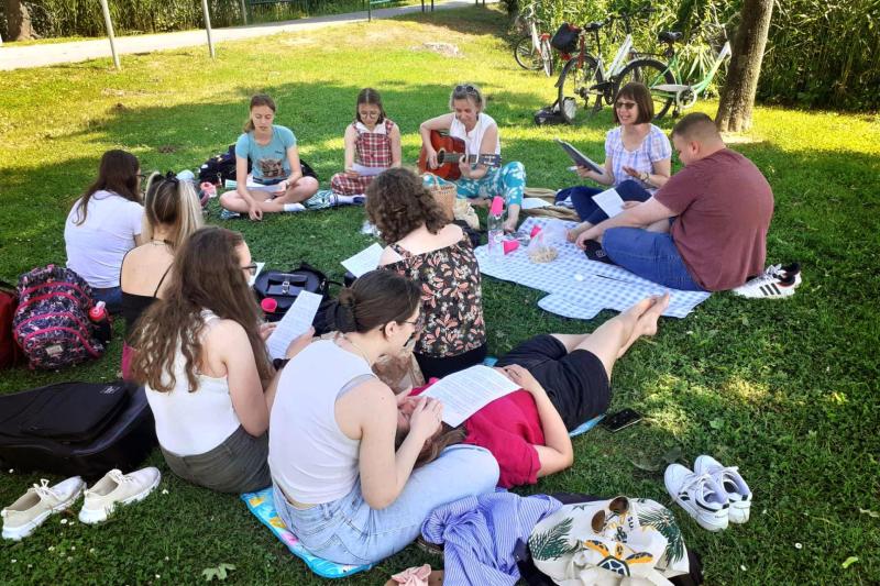 Ez a tanév a tinódis „kóristák” számára keretes szerkezetű lett: piknikkel kezdtük, és piknikkel zártuk. Túl az írásbeli érettségin végzőseinktől a Csónakázó-tónál búcsúztunk. Elmondhatjuk, hogy együtt végigéltünk mindent: pandémiát, online oktatást, maszkviseletet, de a dalos kedvünk soha nem hagyott el bennünket. Most jó volt újra együtt lenni, beszélgetni, sokat nevetni és énekelni. Zengett az énekszó a „Csótó” partján spontán közönségünk és a magunk örömére. Csak azt kívánhatjuk ballagóinknak, hogy mindig legyenek társaik a közös daloláshoz!