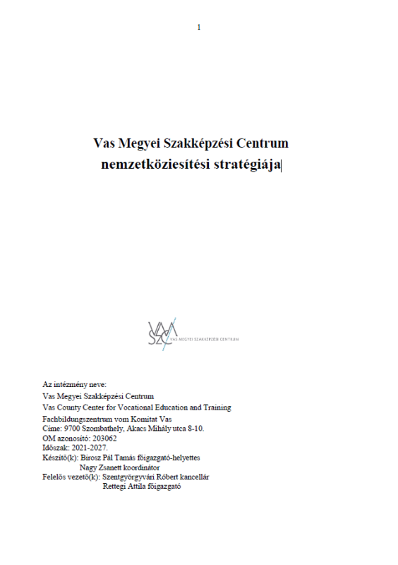 Vas Megyei Szakképzési Centrum nemzetköziesítési stratégiája