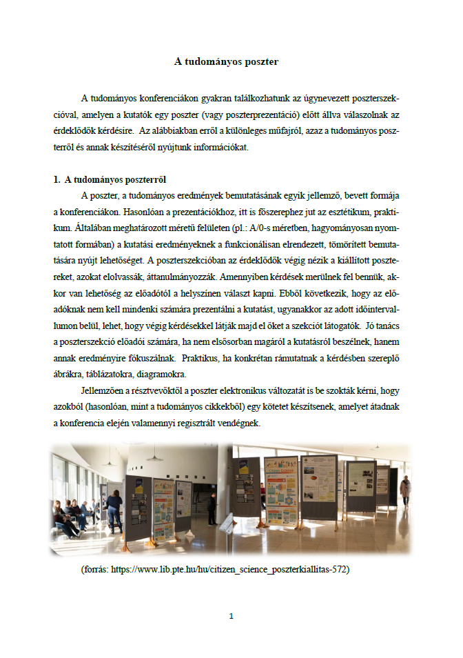 A tudományos poszter A poszter értékelése 1. mintaposzter 2. mintaposzter Posztersablon 2024. szeptember 15.