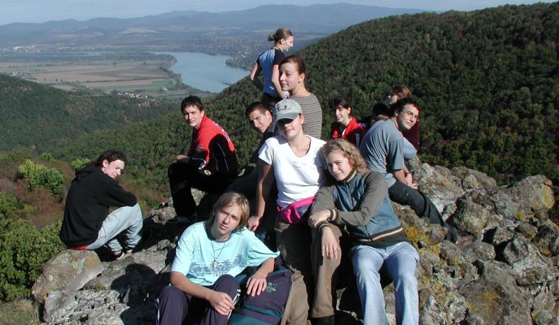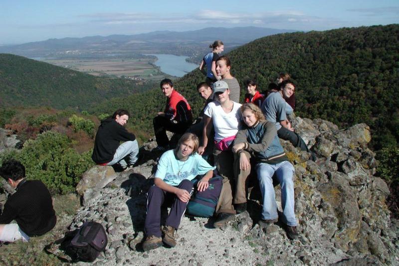 Szombaton verőfényes napsütésben törtünk a Vadállókövek felé. A Visegrádi-hegység egyik legkülönlegesebb formái az ún. Vadállókövek. A legkeményebb vulkáni kőzetek dacolnak a külső erőkkel és azok bizarr formákkal teszik változatossá az utat. (A nevük is érdekes pl. Nagytuskó, Bunkó, Felkiáltójel stb.). A meredek kaptató és a hátizsákok súlya kicsit szétzilálta a csapatot, de így is jó időt futottunk a csúcsig. Szerintem a Prédikálószékről (639 m) van a legszebb panoráma a Dunakanyarra. Itt kicsit kajáltunk, fényképezkedtünk, majd leereszkedve a Király-kúti Nyeregbe, újra felfelé haladtunk a Dobogókőig. Útközben – a túlélőtúrák szokásaihoz hűen – elhagytunk valakit, most éppen Erikát. Térképböngészés, ordítozás és némi kitérő után újra együtt volt a csapat. A Dobogókőn éppen ősmagyar fesztivál volt, lóval, íjjal, eredeti ruhában, eredeti ”szittyakajával”. Itt aztán megpihentünk, persze a csúcsfotó sem maradt el. Konzervet melegítettünk, ettünk, ittunk és közben a reggel még vizesen eltett sátrainkat szárítgattuk a büfé melletti fán. A helyi WC-s erre a kis fiesztára csak ennyit reagált: „Kik ezek az őrültek?” Hát természetesen Mi! A délután közepén tovább battyogtunk a Fekete-kőhöz. Ez már a Pilis egyik csúcsa, ahonnan nyugat felé lehet gyönyörködni. Az időnk ki volt számolva, lábaink és vállaink pedig jelezték, hogy már nem kellene eltévedni! Persze most jött a java! A Simon halála elnevezésű szakasznál rátértünk egy betonútra, ahol kb. 2 km-t mentünk feleslegesen, mert a lekanyarodó jelzést alig találtuk meg. A Vaskapu-völgy szurdoka nappal biztosan tuti, sötétben viszont a kövek és kidőlt fák között lavírozva inkább idegőrlő volt. De kijutottunk és már láttuk Pilisszentkereszt fényeit! Természetesen korai volt az öröm, mivel a jel ismét kifutott alólunk. Semmi pánik, toronyiránt lemegyünk! A lefelé út viszont tele volt jó kis gödrökkel. Valaki meg is jegyezte, milyen rossz lenne erre felfelé menni. És lőn! Lefelé egyre sűrűbb lett a gaz, ami aztán lassan átment szedresbe, majd sarjakácosba. Mivel mindkét növény igen szúrós, visszavonulást fújtam, kb. 100 m-re a falutól! Sűrű káromkodás közepette, de visszamentünk a földútra. Most már csak a sátorverés lebegett mindenki szeme előtt! Többet nem rontottunk, így lejutottunk az egykori Cisztercita kolostor romjaihoz. A hajnali csípős hideg ellenére mindenki jól aludt.