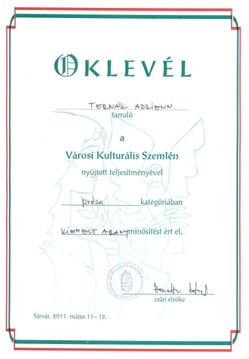 Takács Tünde 12.B osztályos tanuló az Édes anyanyelvünk nyelvhasználati versenyen országos döntőbe jutott