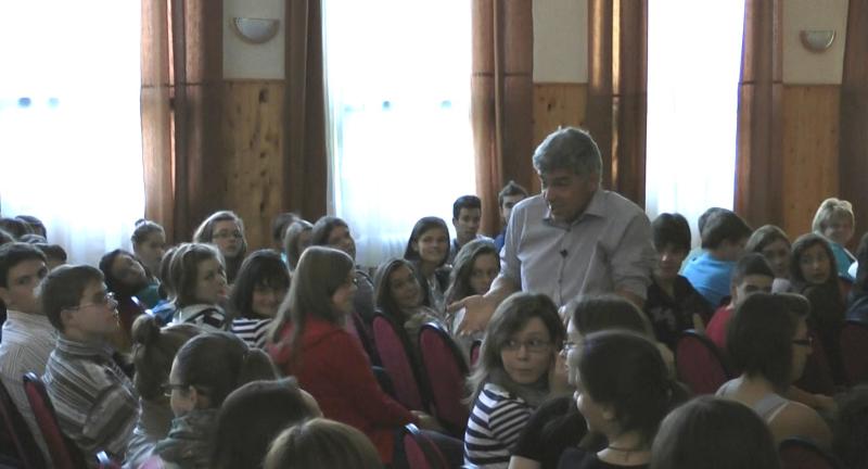 Az előadó sárvári tanulmányait befejezve egy évet töltött el a szombathelyi egyetemen, majd a debreceni egyetemen magyar-, orosz- és lengyel szakon végzett. Az előadás folyamán rövid idő erejéig egy macedón filmből emelt ki részletet, melyet különböző szempontok alapján elemztünk. A tanár úr felhívta a figyelmünket, hogy léteznek nézhető műsorok is a televízióban, csak meg kell tanulnunk kiszűrni a számunkra színvonaltalan műsorokat. Véleményére különösen érdemes hallgatnunk, hiszen nevéhez sok fontosabb publikáció is fűződik magyar, illetve idegen nyelven, köztük A mozgóképkultúra és médiaismeret tanításának módszertana, Moszkva, Varsó, Maribor. Válogatott tanulmányok, valamint Motion Picture and Media Education in Hungary. Az egykori gimnazista elmondásai alapján az intézményben, ahol tanít, azon kívül, hogy nagyon korszerű körülmények között készülhetnek a diákok, olyan neves szakemberek is oktatnak, mint Koltai Lajos rendező és operatőr.