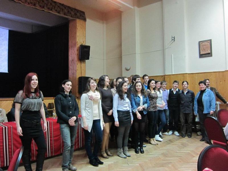 Pénteken a hivatalos program részeként a városról szóló film levetítése után a polgármester úr előadást tartott Sárvárról, hangsúlyozva a nemzetközi gyógyhellyé való minősítésben rejlő lehetőségeket a város számára, és válaszolt az angol diákok kérdéseire. Hevér Mihályné igazgatónő a gimnáziumról szóló beszédében kiemelte a nyelvtanulás fontosságát a jövő generáció számára. Végül az angol csoport vezetői megköszönték a vendégszeretetünket. Különösen fontosnak találták, hogy a főváros mellett a vidéket is megismerhették, felidézték a látogatás legemlékezetesebb részeit: a fürdést a gyógyfürdőben, a Nádasdy vár látogatást, magyar népdalok megismerését és a váratlan keddi hóesést. A délelőtt során három csoportban folytak óralátogatások a kijelölt témákról, összehasonlítottuk a két nép diákjainak legkedveltebb szabadidős tevékenységeit, szó esett a leggyakoribb bűncselekményekről és ezek megjelenítéséről az egyes sajtótermékekben. A csütörtöki vacsora és ismerkedési est lehetőséget nyújtott nyelvgyakorlásra és új barátok szerzésére a Hungary Quiz kitöltése, a Nádasdy fesztiválról szóló prezentáció meghallgatása és a filmvetítés során.