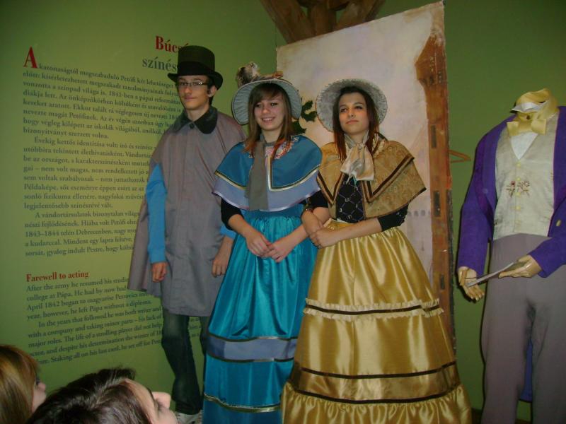 Később bementünk a Petőfi Emlékmúzeumba, ahol sokféle szempont szerint dolgozták fel a költő életét, munkásságát. Több festményt is láttunk róla, mely a különböző életszakaszait ábrázolta. A vállalkozó szelleműek beöltözhettek a kor divatja szerint.