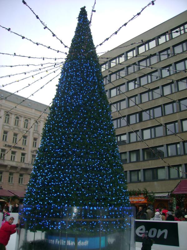 Utána átsétáltunk a Szent István Bazilikába, majd körülnéztünk itt is a vásárban, melyet vele szemben alakítottak ki. A tér közepén volt egy kis korcsolyapálya egy hatalmas kék fenyőfával.
