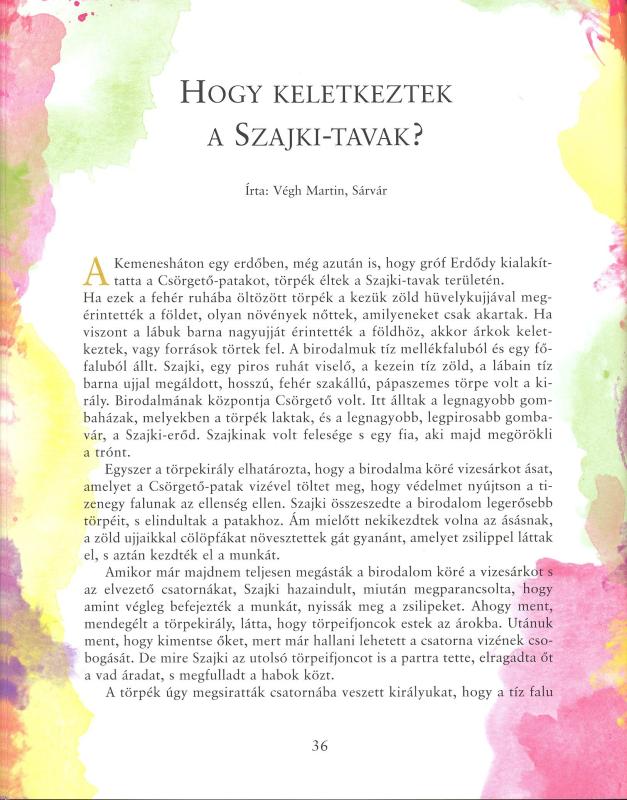 Végh Martin 9.B osztályos tanulónk mondája - "Hogyan keletkeztek a Szajki-tavak?" - megjelent nyomtatásban a Pannon Lapok Társasága szerkesztette "Mesék könyve" című kötetben. Pictures Címkék Humán munkaközösség 2011. december 09.