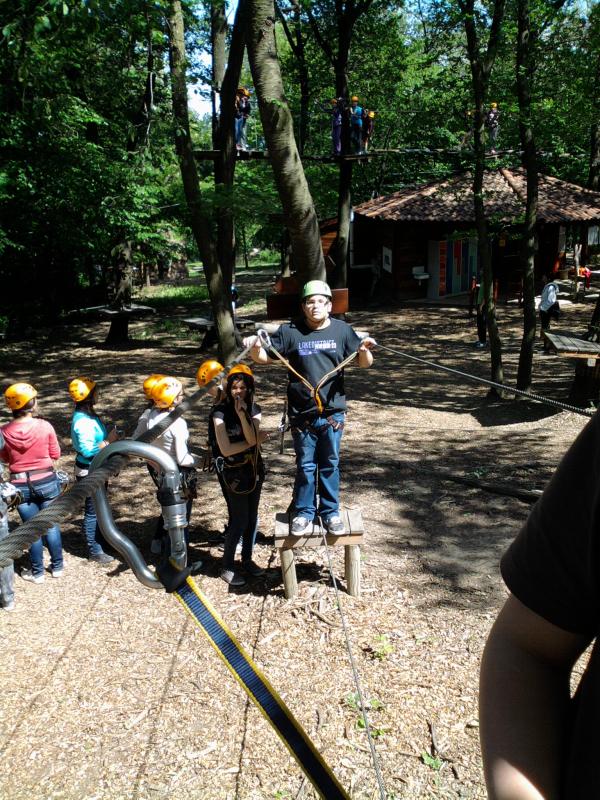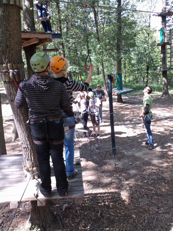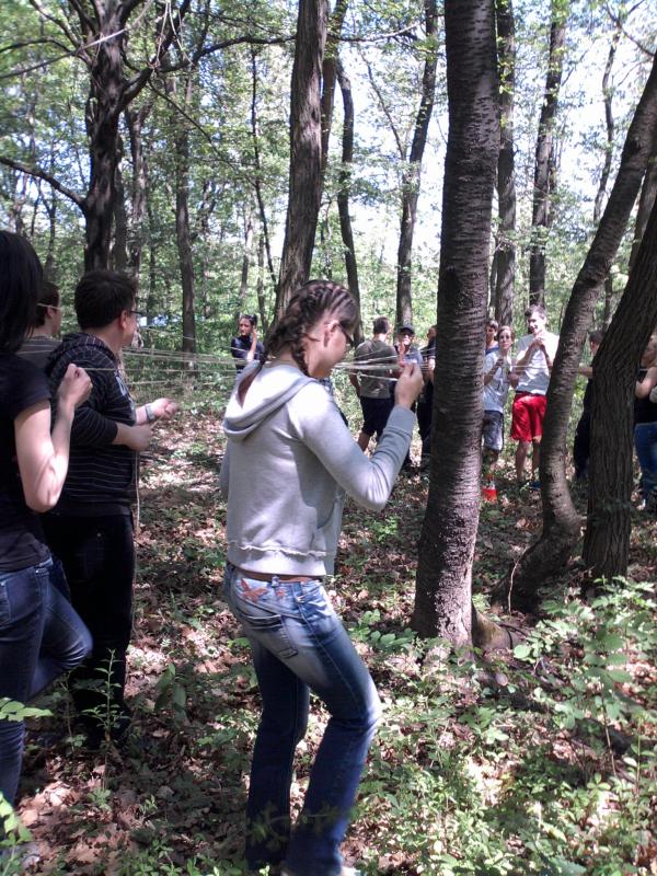 Ebben a tanévben május 18-án osztályunk a Szombathelyhez közeli Gyöngyösfalut látogatta meg. Akadt köztünk olyan is, aki most járt itt először. Remek időt fogtunk ki, így mindenkinek volt lehetősége kipróbálni erejét és kitartását a drótkötélpályán. A délelőttöt csoportépítő tréninggel kezdtük. Körülbelül másfél-két óra alatt olyan feladatokat kellet megoldani, melyek még jobban összekovácsolták az osztályt. Ezután szalonnát sütöttünk, de Patrik egy fél disznót sütött a kijelölt helyen. Ezt követően mindenkinek kötelező volt végigmenni egy gyakorló pályán, csak utána mehetett az általa választott pályára. Volt, aki hamar feladta, de olyan is akadt, aki a denevér pályától sem riadt vissza. Szabadidőnkben íjászkodni, focizni és fagyizni is tudtunk. Estére már nagyon elfáradtunk, de kellemes élményekkel tértünk haza.