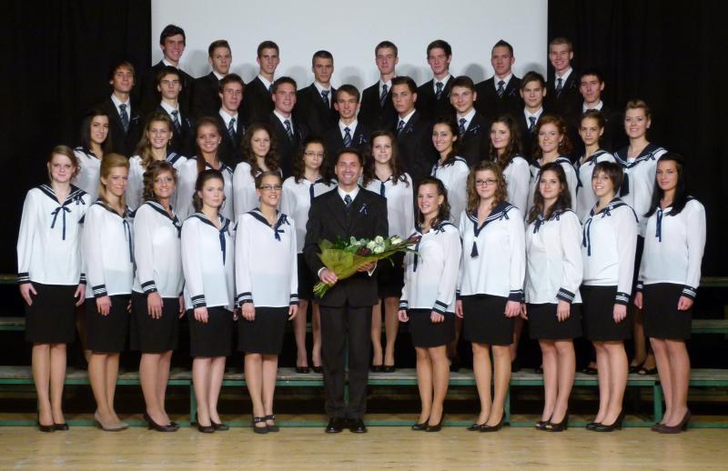 Jó szellemű, jó közösséget alkotó osztály, amelyben természetesen megtalálhatóak az osztály közösségét irányító „vezéregyéniségek”, az osztályért tenni akarók és szívesen dolgozók, valamint a kissé passzívabb háttérbe húzódók. Azonban senki nem tesz és dolgozik az osztály ellen. Az osztályszintű közös munka színtere volt a szalagavatói bál és műsor megszervezése. Ez nem zajlott konfliktusmentesen, de a több ötletből, lehetőségből próbálták a súrlódások elsimításával a lehető legtöbbet kihozni, tanáraik, szüleik és saját elvárásaiknak megfelelni. A szalagavatói bálra készülődve megérezték, hogy ez az utolsó olyan középiskolás év, amikor még kihasználhatják és kiélvezhetik a diákéletforma szabadságát, önfeledségét, új élményekkel gazdagíthatják diákéletüket, élvezhetik az osztályközösség által nyújtott biztonságot, az összetartozás érzését. Ezt a hozzáállás egyre inkább átragadt a tanulmányi munkára is. Megérezték, hogy életük egy komoly időszakának vége sólyomszárnyakon közeledik, amelyet nem csak szórakozással, hanem tanulmányi tartalommal, munkával is meg kell tölteni. Érdeklődőkké váltak a felsőoktatási lehetőségek iránt, minél többen próbáltak középfokú és néhányan felsőfokú nyelvvizsgát tenni. Ennek eredményeként a tanév végére 36 db középfokú (ebből 32 „C” típusú) és 6 db felsőfokú nyelvvizsgával büszkélkedhetnek az osztály tanulói. Nagy mentális és motivációs törést okozott a felvételi keretszámok radikális megváltozása, mivel többen készülnek közgazdasági pályára. Szerencsére ezen tanulók is hamar túljutottak a csalódáson, és mindent beleadva nem az álmaikat tették félre, hanem megpróbáltak(nak) tisztességgel felkészülni a rájuk váró kihívásokra.
