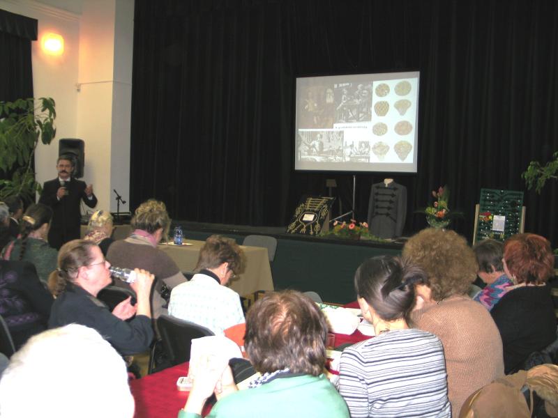 Ezen meghívott előadóként vett részt Dr. Hajdu Tamás, iskolánk latin és történelem szakos tanára, gombkötő népi iparművész. A rendezvény első napján a szekeresgazdák dúsan zsinórozott viseletéhez kapcsolódva a gombkötő mesterség történetével ismertette meg a konferencia résztvevőit. A második napon gyakorlati foglalkozáson mutatta be a szakma fogásait.