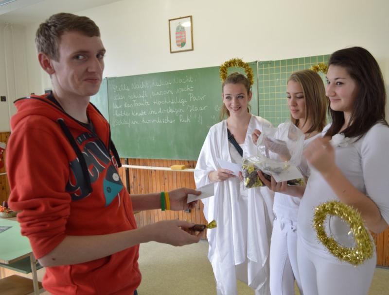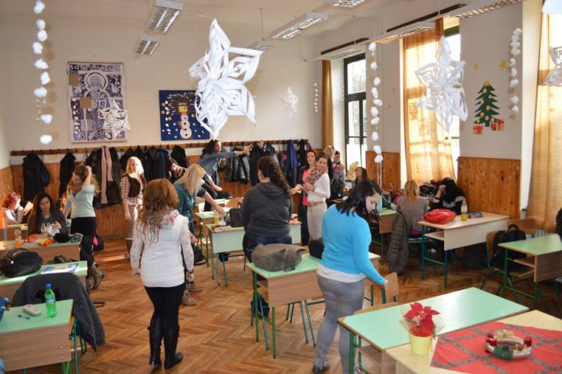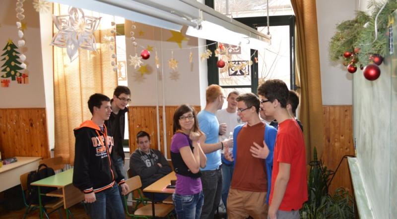 Az iskolában, második otthonunkban is készülődtünk erre a csodálatos ünnepre, melynek keretében pályázattal lelkesítettük a diákokat, hogy a termeket is öltöztessék díszbe. Szerencsére nagyon sok osztályközösség vette a ’fáradságot’ és részt vett a pályázatban, sőt még az egyéni pályázatokra is érkeztek ajándékötletek, amelyeket saját kezűleg készítettek el a diákok. A termeket és az elkészített ajándékokat 5 tagú zsűri értékelte, a díjakat az iskolai ünnepség alkalmával vehették át a nyertesek.
