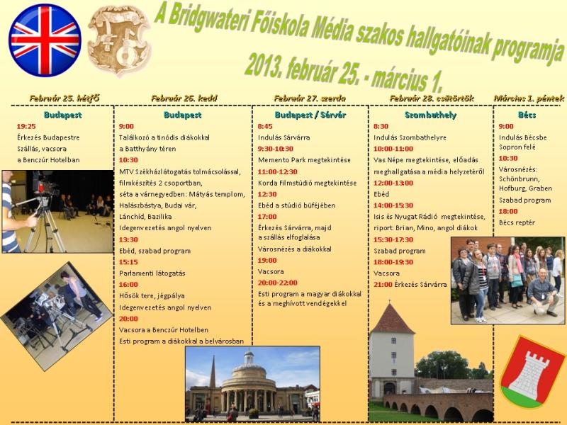 Szeptemberben tinódis diákok egy csoportja látogatást tett a Bridgwater-i Főiskolán, februárban pedig rajtunk volt a sor, hogy hasonló vendégszeretettel várjuk a ottani média szakos hallgatókat. Turisztikai és szakmai programok sokasága váltotta egymást a négy nap alatt.