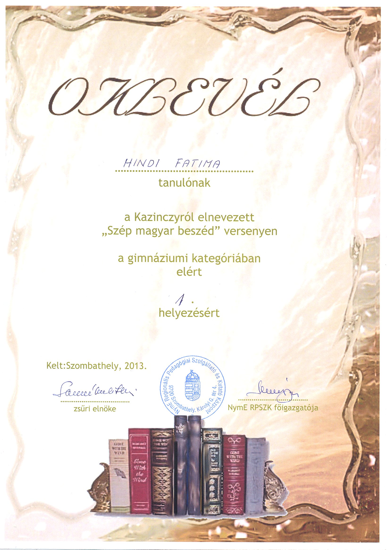 A Kazinczyról elnevezett ,,Szép magyar beszéd'' verseny helyezettjei