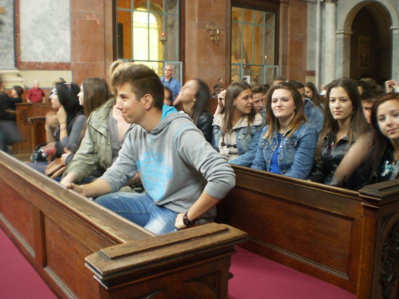 Pénteken első állomásunk Esztergom volt. Történelmi és vallási központ, itt született István király, itt halt meg Balassi Bálint, és itt van Magyarország legnagyobb bazilikája. Ennek a csodálatos épületnek a pincétől a padlásig, azaz az altemplomtól a kupoláig sok szegletét bejártuk, s el is fáradtunk, mire a több száz csigalépcsőt megmásztuk. De a csodálatos kilátás persze kárpótolt a fáradtságért.