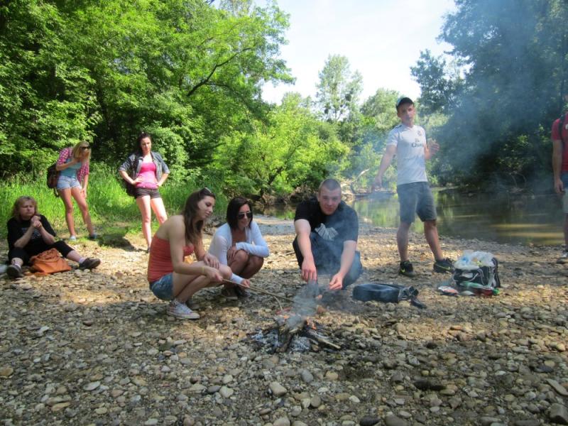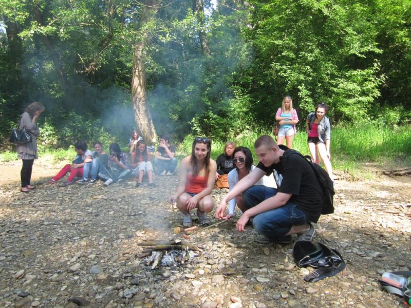 Az utolsó tanítási napot idén is az egészséges életre nevelés jegyében töltöttük. Már egy bevált útvonalon vágtunk neki az erdőnek. A korábbi esőzések miatt a talaj egy kissé felázott, így itt-ott kisebb tócsák között vezetett az utunk, de ez az apróság senkinek sem szegte a kedvét. Amint megérkeztünk a helyszínre, ami a Rába folyó kavicshordalékból álló parti részén terült el, látszottak a korábbi áradás nyomai, de az iszapos részeket ügyesen elkerültük. A még nem teljesen kiszáradt gallyakból megfelelő szakértelem segítségével pillanatok alatt fellobbantak a tábortűz lángjai. A szalonnák, sonkák és virslik a parázs felett ízletes falatokká sültek és a megfáradt vándorok jóízűen fogyasztották el a magukkal hozott elemózsiát. A visszaút során megtapasztalhatták a diákok, hogy a magas fűben is lehet kényelmesen közlekedni. A tekintetük is elárulta a szavaik mellett, hogy lelkesen várják az újabb erőpróbát.