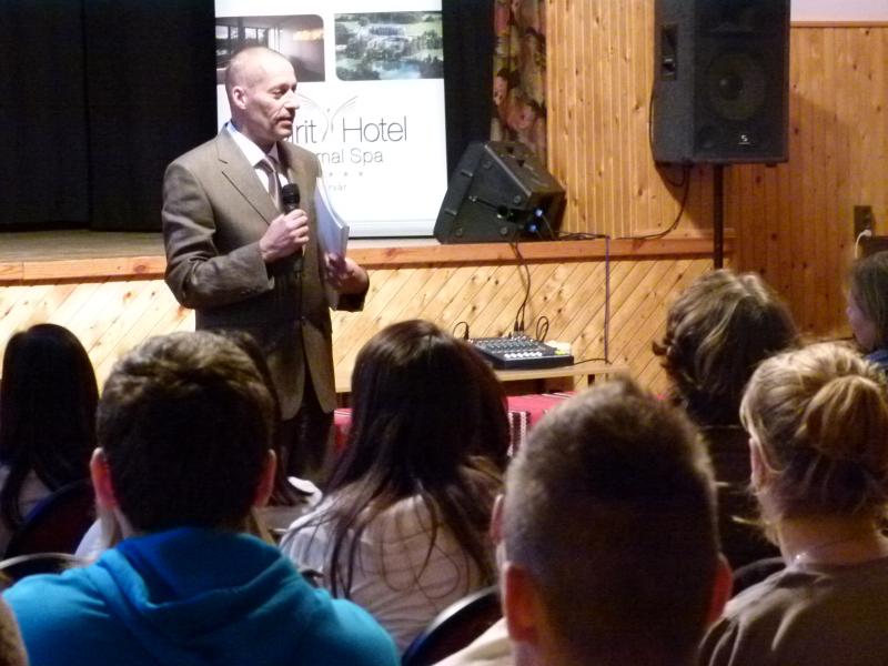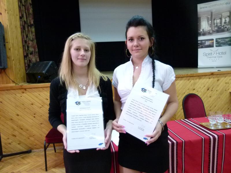 Az előadások után, míg a zsűri értékelt, egy közönségszavazás is lezajlott. A nézőknek egyértelműen a Sipirit Hotelt feldolgozó prezentáció tetszett, így ők kapták a közönségdíjasnak szánt tortát. A zsűri értékelésében mindkét gimnáziumi csapat munkáját magas szintűnek nevezte, és külön megdicsérte a diákokat, hogy nem csak az elméletet ismertették, hanem gyakorlati munkát (interjúk a vezetőséggel, kérdőíves felmérés, SWOT elemzés stb.) is végeztek a projekt elkésztése során. Dr. Horváth Attila, a zsűri elnöke elmondta, hogy a két egyenrangú munka között nehéz volt választani, de sajnos csak egy csapat utazhat a nemzetközi találkozóra. A háromtagú szakmai zsűri a dolgozatok és a prezentációk alapján a fürdőt feldolgozó csapat munkáját hozta ki végül győztesnek. A csapat örömét nem homályosította el az a tény, hogy az öt főből csak ketten, a két angolul legjobban beszélő utazhat novemberben Monacóba.