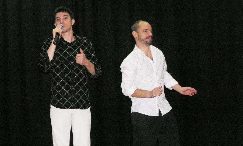 december 7-én rendhagyó irodalomórát tartott iskolánkban a Weöres Sándor Színház két tehetséges művésze, Kálmánchelyi Zoltán és Vass Szilárd. Az „Irodalmi szösszenetek” című interaktív óra nagy élmény, mondhatni felüdülés, igazi csemege volt az iskola diákjainak és tanárainak ezen a szombati munkanapon.