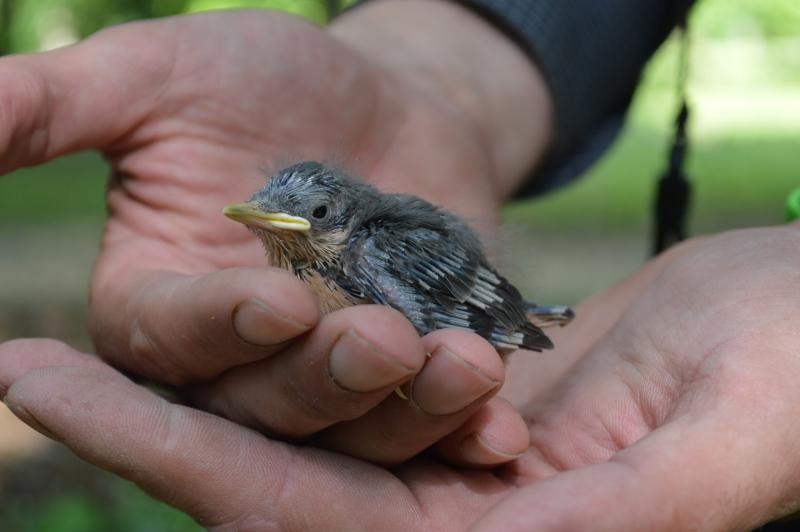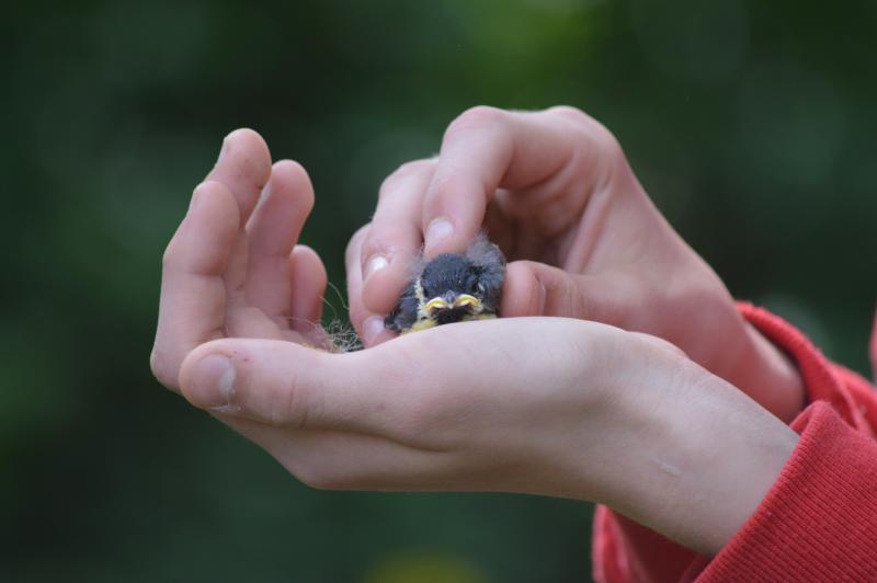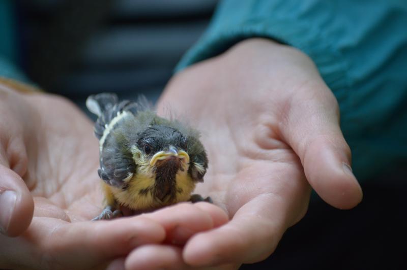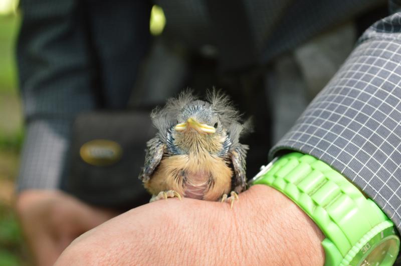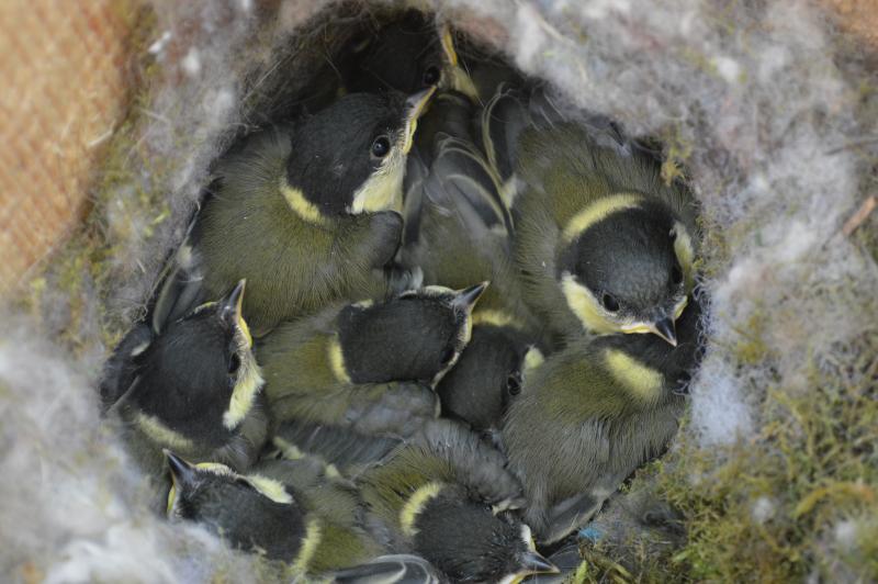 Az egyetlen kékcinke fészekaljban 9 db egyenetlenül fejlett fiókát találtunk és egy tojást.