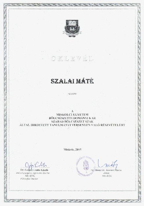 Szalai Máté 11.B osztályos tanuló a Miskolci Egyetem Bölcsészettudományi Karának szabad bölcsészet szakja által középiskolásoknak meghirdetett tanulmányi versenyén dicséretben részesült.Felkészítő tanár: Simonné Keszei Anita Pictures Címkék Humán munkaközösség 2015. június 03.