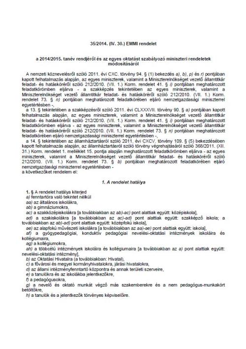 A 2014/2015. tanév rendje