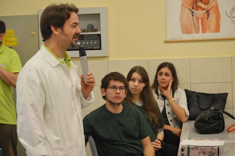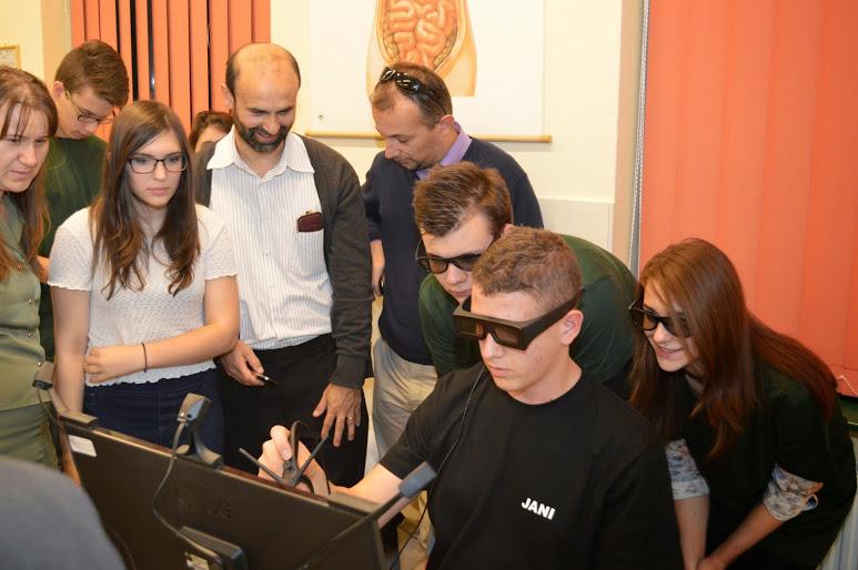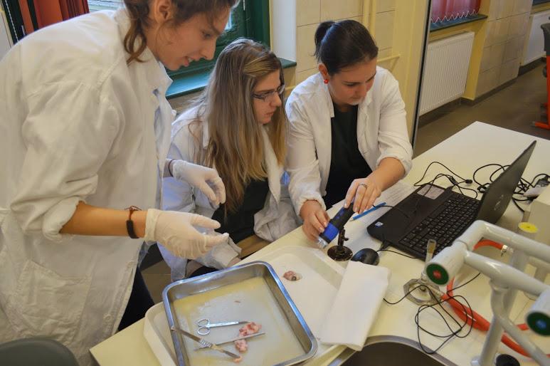 A regisztrációt követően Hevér Mihályné igazgató asszony mondott köszöntőt, majd Vígh Viktor tanár úr, a verseny házigazdája tájékoztatta a vendégeket. A nagyszámú érdeklődő miatt három helyszínen, forgószínpad szerűen zajlottak az események. A laborban a boncolási gyakorlatra és az ehhez kapcsolódó feladatlap kitöltésére került sor. A disznószem boncolása mellett a diákoknak fényképezniük is kellett a mikroszkópkamera segítségével. A számítástechnika teremben a csapatoknak a www.leopoly.com honlap segítségével a szem fotoreceptorát, egy pálcikát kellett 3D-ben megrajzolni („gyurmázni”) és annak felépítését, működését prezentálni. Az értékelés a sejt anatómiai pontossága és a prezentáció tartalma alapján történt. A médiateremben a diákok egy kooperációs tanulási szituációs feladatban versenyeztek: források (cikk, grafikon, fénykép, multimédiás felület, prezentáció) alapján kellett megválaszolniuk a kérdéseket. A válaszadáshoz a digitális szavazórendszert használtunk. Az egyes fordulók között állófogadáson és a büfében tölthették fel a versenyzők kimerült energiatartalékaikat.