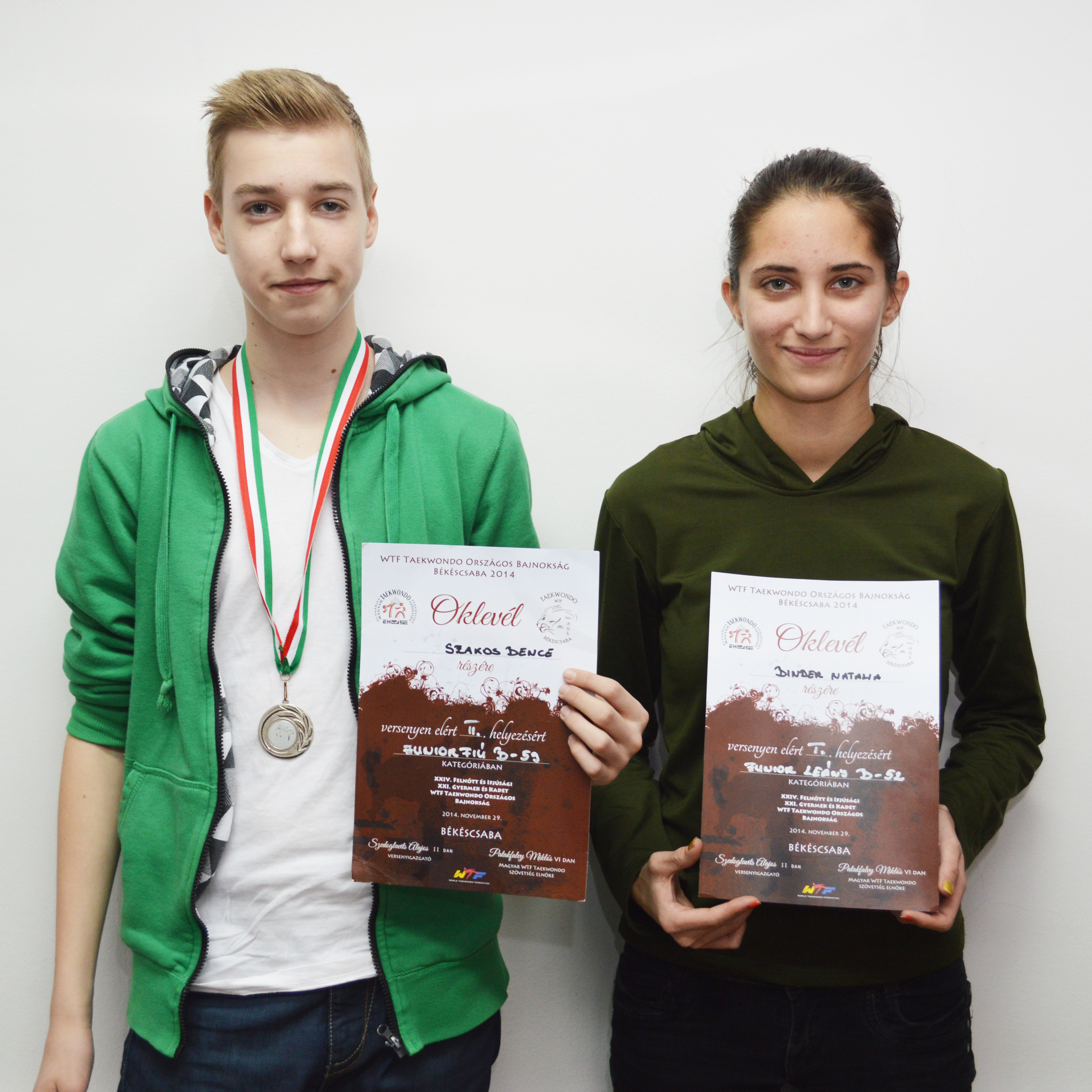 A sárvári Taekwando Sharks Egyesület tagjai Binder Natália 9.B és Szakos Bence 9.C osztályos tanulóink. A 2014. november 29-én Békéscsabán megrendezett Országos Bajnokságon Natália 1. helyezést, míg Bence 2. helyezést ért el.