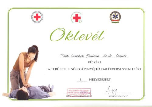 Elsősegélynyújtó verseny területi 1. hely
