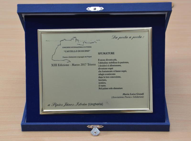 Április elsején este érkeztünk meg Triesztbe. A szervezők jóvoltából a kétcsillagos Hotel Centro Triste vendégei lehettünk. Vasárnap egy rövid kirándulást követően indultunk el Duinóba, a kastélyhoz. Az épület nagy múltra tekint vissza. Rilke elégiáiról ismert, de a legenda szerint Boccaccio is megfordult ott, így szervesen kötődik az irodalomhoz. A lélegzetelállító kilátás, a gyönyörű park, a kastély díszes szobái és a régi vár egy kiálló sziklán található romjai mellett a kis falu festői szépsége is emelte a rendezvény fényét. A díjkiosztóra a jegypénztár melletti épület konferenciatermében került sor.