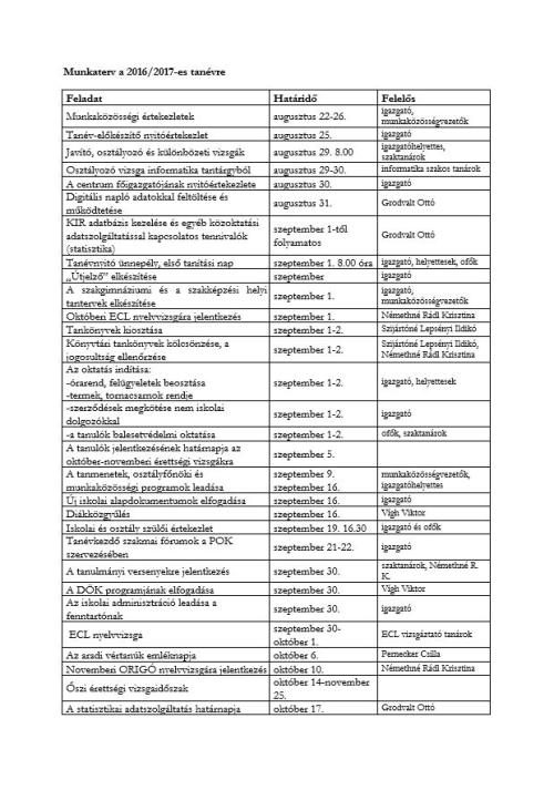 Feliratkozás a következőre: Munkaterv 2016-2017