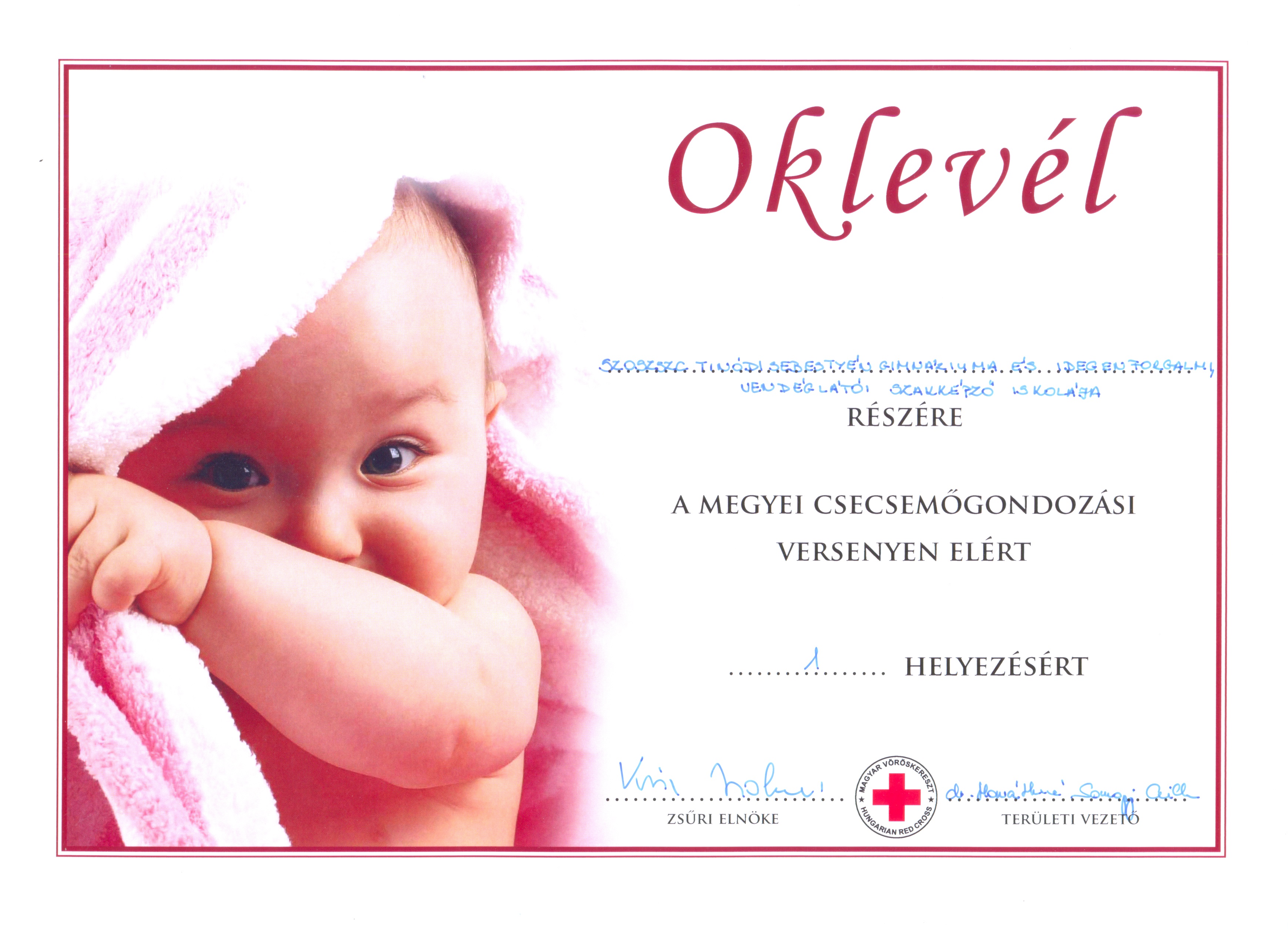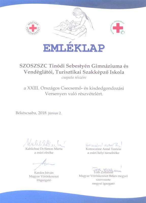 A 2017/18-as tanévben Pintér Gréta, Varga Alina és Lencse Virág 10.C osztályos tanulók képviselték iskolánkat a verseny területi fordulóján, ahonnan továbbjutottak a megyei megmérettetésre. Az elméleti és gyakorlati feladatok sikeres megoldása után a csapat bejutott a 3 napos békéscsabai országos döntőbe, mely 2018. június első napjaiban kerül megrendezésre. Felkészítő: Bödőcs Piroska védőnő