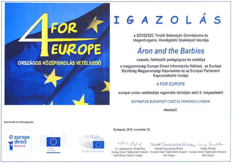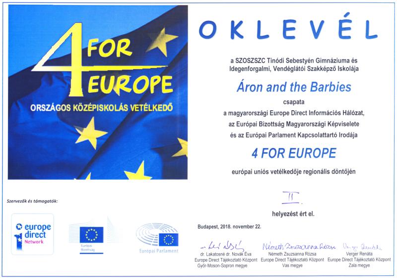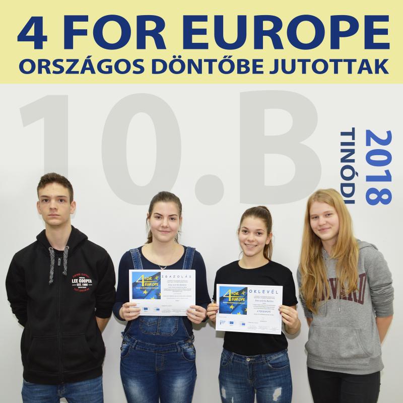 A magyarországi Europe Direct Információs Hálózat, az Európai Bizottság Magyarországi Képviselete és az Európai Parlament Kapcsolattartói Irodája „4 FOR EUROPE” címmel európai uniós témájú versenyt szervezett középiskolás diákoknak.