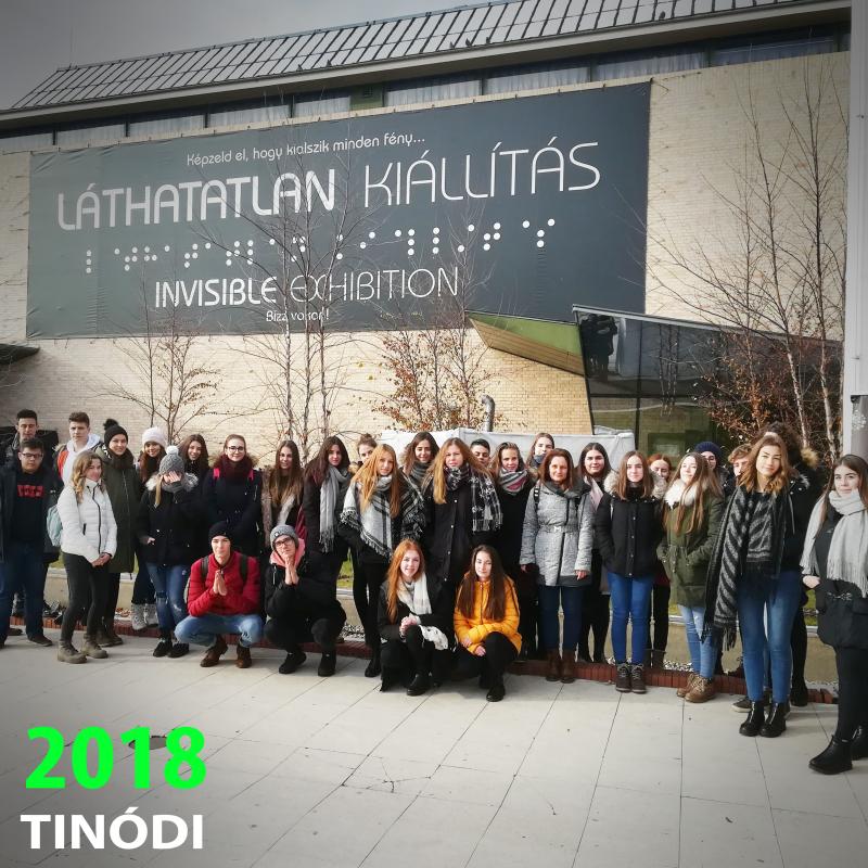 A láthatatlan kiállításon idén a 11.A és a 11.B tanulói jártak. A látogatást főleg az etika órához kapcsolódóan szervezem évről évre. A kis csoportokban vezetett program legfontosabb része egy egy órás út elsötétített terekben. Izgalmas a fogadótérben kialakított interaktív környezet is: kis feladatokon keresztül kezdjük gyakorolni legfontosabb érzékszervünk, látásunk hiányát. Memóriajáték különböző tapintású felületekkel, sakktábla és a braille írógép használata.