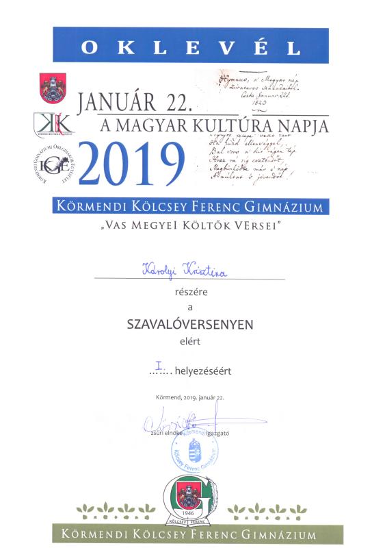 Szavalóverseny Körmenden a Magyar Kultúra Napja alkalmából