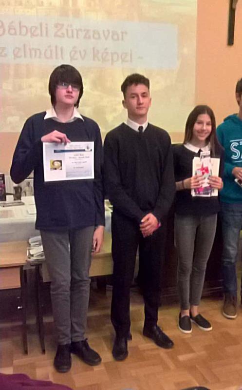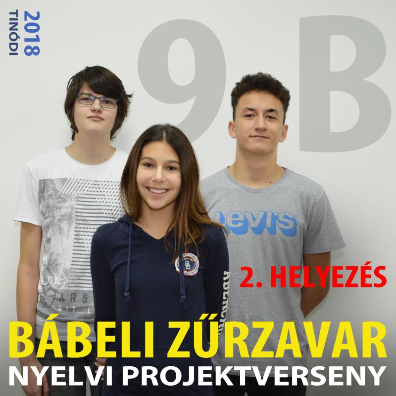 Az elmúlt évek dobogós helyezései után a 9.B osztály 3 fős csapata nem vallott szégyent a 9 csapatból álló mezőnyben. Király Panka, Kulcsár Mihály és Tóth Dávid színes prezentációjukkal (egyedüli prezi) 2. helyezést értek el. Az angol nyelvű előadásban hallhattunk az ausztrál iskolarendszerről, furcsa ételekről és az emuk ellen vívott háborúról, valamint bővíthettük ismereteinket Ausztrália földrajzával, természeti szépségeivel és egzotikus állatvilágával kapcsolatban. A tanulók nagy örömére szolgált a könyvjutalom: egy felsőfokú nyelvvizsgára felkészítő könyv. Gratulálunk a diákoknak!