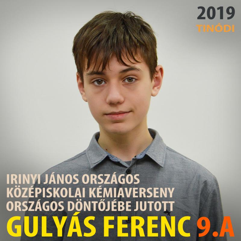 Gulyás Ferenc 9.A osztályos tanuló megyei 1. helyezettként kivívta a jogot arra, hogy az Irinyi János Országos Középiskolai Kémiaversenyen részt vehessen az országos döntőben A döntőnek ebben az évben Debrecen városa ad otthont 2019. április 5–7. között.