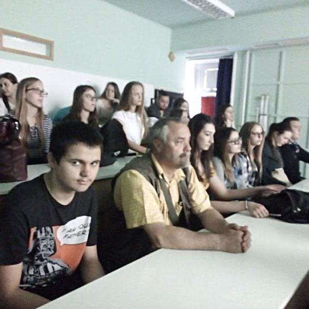 Az első előadást az egyetem C épületében hallgattuk meg. Az előadó Dr. Gyurác József volt, témája: Az állatok kommunikációja. Különböző madár, rovar, illetve emlős hangjával ismerkedhettünk meg. Az elhangzott információkból az előadás végén egy játékra került sor, amelyben hangok alapján kellett beazonosítanunk az állatfajokat.