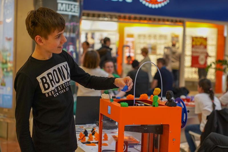 A kirakodás, nyugtatömbvásárlás, a technika beüzemelése után kezdődött a megnyitó. Melegen köszöntötték a szervezők a 22 csapat tagjait, akik a bemutatkozáson túl még termékeladásra is vállalkoztak. Mi 3D nyomtatott termékekkel: szívecskékkel, sípokkal, egyszarvúakkal, zsákbamacskával próbálkoztunk. Készítettünk szórólapokat és névjegyet is. Mindezek mellett megszólítottuk Buda értő közönségét: miután beszkenneltük arcvonásaikat, leszeleteltük az object file-t, azt kinyomtatva kitűzőként kínáltuk jó pénzért az erre vállalkozóknak – saját magukat. Először a szervezőket „kitűzősítettük”, majd ahogy telt-múlt az idő, egyre több lett az érdeklődő. Szándékosan nem vásárlót írtam, mert a bugyellárisát is kinyitni hajlandó fővárosiak nem tolongtak. Úgy néz ki, ennél agresszívabb marketingstratégiára kell áttérnünk…