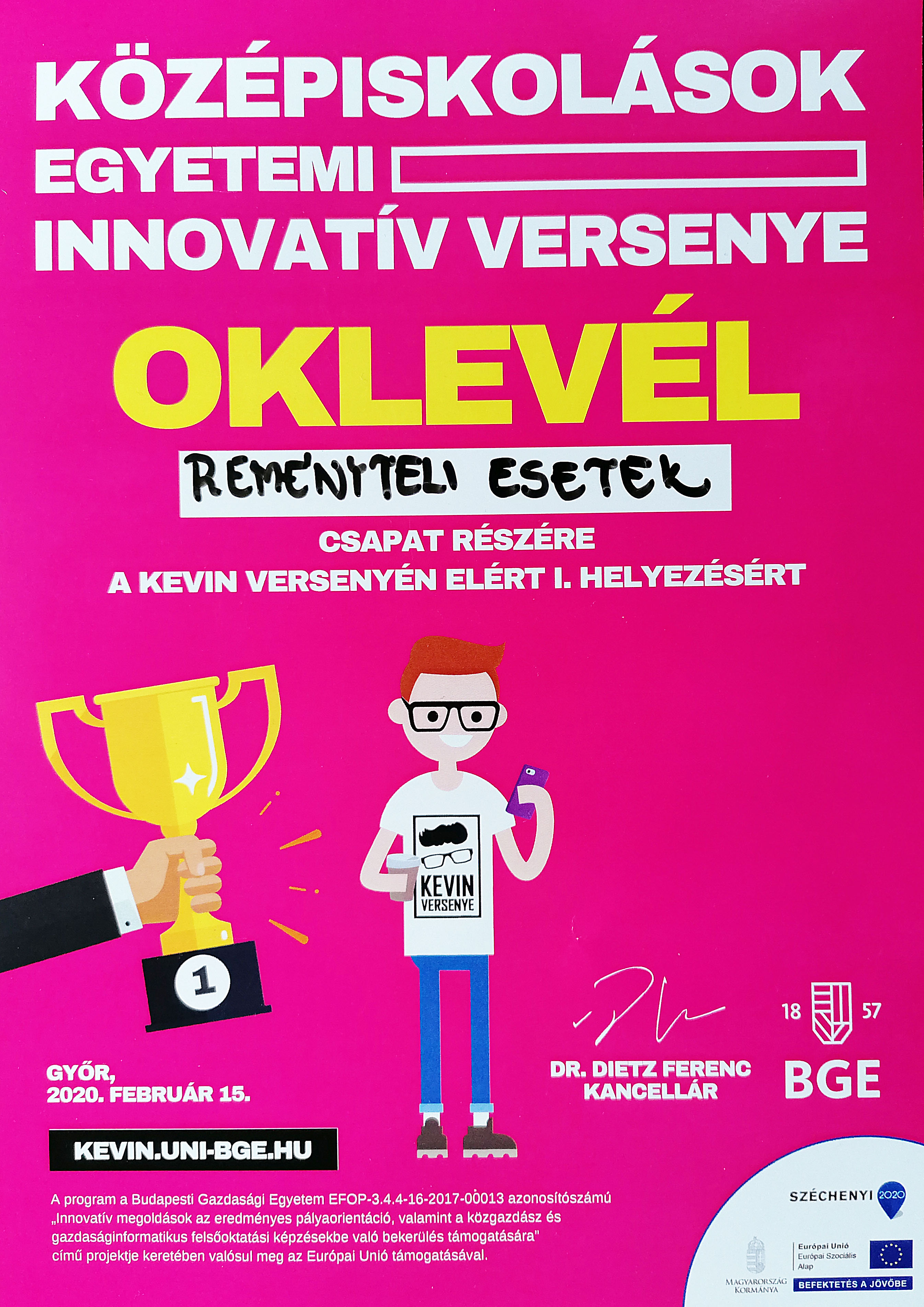 30 diák 7 csapatban mérte össze tudását a győri Révai Miklós Gimnáziumban megrendezett Középiskolások Egyetemi Innovatív Versenyének (KEVIN) idei második, győri döntőjén. A Budapesti Gazdasági Egyetem (BGE) pályaorientációs programja keretében meghirdetett idei verseny második regionális döntőjét a Vas Megyei SZC Tinódi Sebestyén Gimnáziuma és Idegenforgalmi, Vendéglátói Szakképző Iskolája „Reményteli Esetek” nevű csapata nyerte meg Sárvárról „Tabu óra” ötletével.