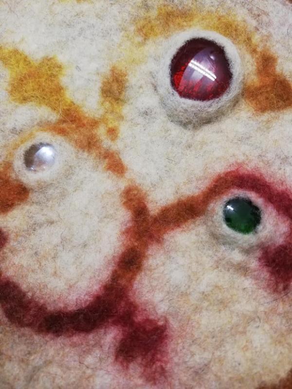 Sümeghi Lili Anna Velünk élő mintázat Részletek és töredékek, amik sokszor önmagukban nehezen ertelmezhetők, később magyarázatot nyernek. textil, textilfesték |   |