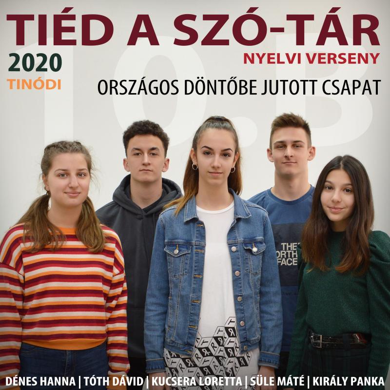 A Maxim Könyvkiadó Kft., a Grimm szótárak kiadója "Tiéd a Szó-Tár" nyelvi versenyén idén iskolánk mind a 4 csapata bejutott a regionális döntőbe, mely – a három selejtező fordulóhoz hasonlóan – online kitölthető feladatokból állt. Idén újdonság volt, hogy a középdöntőbe jutás feltétele volt az is, hogy a csapatok készítsenek egy videót. Egy tetszés szerinti, akár kültéri, akár beltéri helyszínen található tárgyak, élőlények, jelenségek neveiből kellett szóláncot alkotni az adott idegen nyelven.