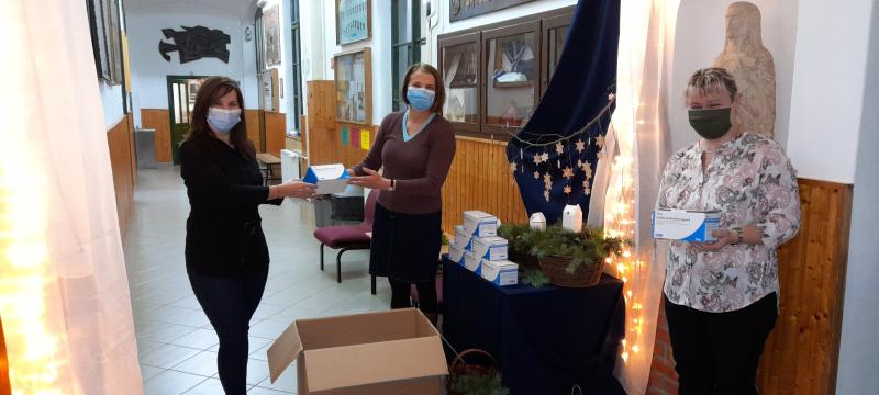 A téli szünet előtti utolsó tanítási napon vehettük át a Flex Magyarország által felajánlott orvosi maszkokat a cég képviselőitől, Kulman Tamástól és Tímár Dórától.