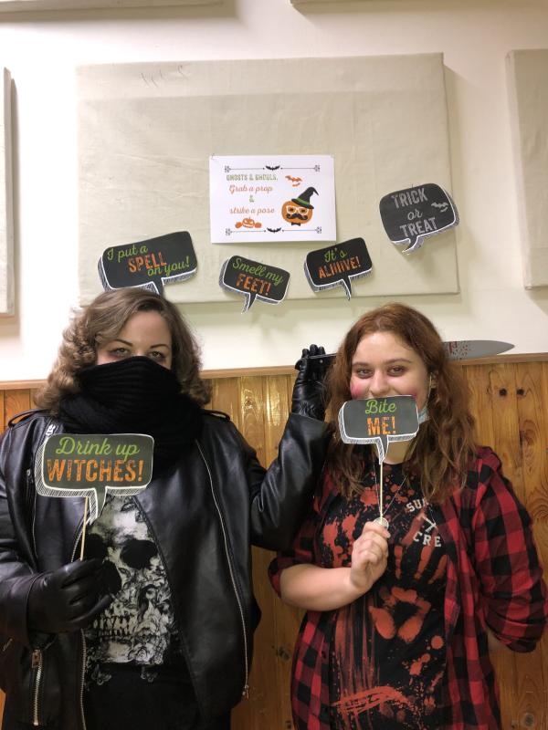 A diákönkormányzat tagjai nagy lelkesedéssel készültek az eseményre, ugyanis az érdeklődőket Halloween-i dekoráció, fotófal, cukorka és tea várta. Jelmezversenyt is hirdettünk, melynek nyertesei Sinka Zsanett és Varga Viktória 2/14. évfolyamos tanulók lettek.