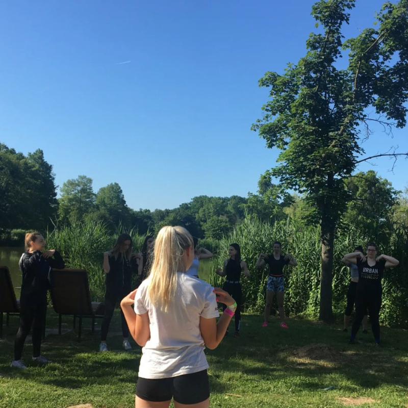 A bemutatkozást követően Mónika az egészséges életmódról tartott rövid előadást, melyet a bemelegítés követett. Ezután a csapatot két részre osztották, és így felváltva próbálhatták ki a különböző edzési lehetőségeket. Megismerték a cross állvánnyal berendezett külön termet, ahol olyan eszközök kaptak helyet, mint a bolgárzsákok, kettlebellek, crossfit kötél, agility létra. A kardió parkban futópadokon, taposógépeken, ellipszis trénereken, ülő- és háttámlás kerékpáron, valamint hegymászógépen edzhettek, valamint ezzel párhuzamosan lapsúlyos és súlytárcsás gépeken dolgoztatták meg az egyes izomcsoportokat. A program végét a közös nyújtás jelentette. A délelőtt folyamán a résztvevő diákok széles körű tájékoztatást kaptak az edzőteremben rendelkezésre álló lehetőségekről.