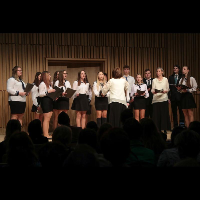 Ez a koncert kétszeresen is kivételes volt: iskolánk kórusa először szólalt meg kórus szerepben a pandémia óta, illetve kivételes volt a helyszín, a Zene Háza. Megtiszteltetést jelentett itt, ebben a különlegesen jó akusztikájú teremben énekelni. A Gloria kánont követően a Kum bayah című dal 3 szólamú feldolgozását énekeltük, majd Schubert Két duettjét. Magyar népdalcsokrunkban a lányok és a fiúk is szólóztak, műsorunkat végül 3 megzenésített verssel zártuk. Gitáron Grodvaltné Martos Veronika tanárnő, hegedűn Kulcsár Mihály 12.B osztályos diák, fuvolán Rácz Anna 10.B osztályos diák kísérte a kórust. A közönség vastapssal jutalmazta műsorunkat.