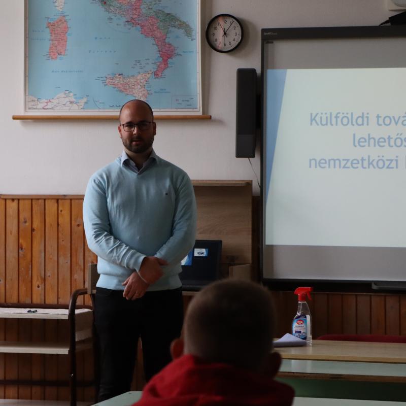 Előadásában arról beszélt, hogy milyen lehetőségek vannak a nemzetközi kapcsolatok szakirányban, ehhez milyen felkészítést adhatnak a külföldi iskolák, hogy aztán a külföldi tanulmányokat kamatoztatva itthon könnyebben el lehessen helyezkedni.