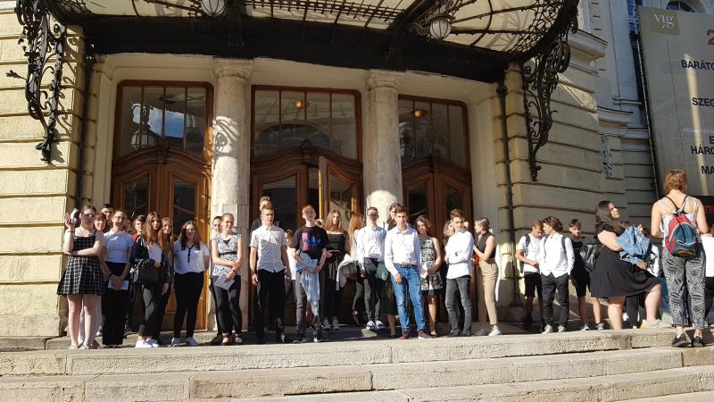A reggeli esős idő miatt később indultunk el, a buszon meglepően csend volt, valószínűleg mindenki az előző nap fáradalmait pihente ki. Útba esett Szentendre, ezért egy kicsit körülnéztünk, sétáltunk az ottani utcákon, valamint a Dunaparton. Majd folytattunk utunkat, Budapestig meg sem álltunk. A Mammut plázában szabadprogramként mindenki megebédelt és körülnézett néhány üzletben. Majd elérkezett a nap fénypontja: a Vígszínház ajtajában állva izgatottan vártuk, hogy elfoglalhassuk helyünket és az előadás kezdetét vegye. Zseniálisan alakították a Pál utcai fiúkat a színészek, a közönség vastapssal jutalmazta őket.