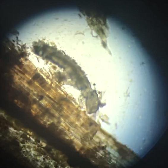A biológia tanagyag része az élőlények szerveződési formáinak megtanítása a diákokkal. Az elméleti háttér megismertetése ebben a szerencsés esetben laboratóriumi gyakorlatokkal tehető még hatékonyabbá, nem mellesleg élvezetessebbé! Az első órán a diákok megtanulták a mikroszkóp részeit és használatát. Sőt, egy önmaguk által létrehozott metszeten a növények fonalas szerveződési formáját is tanulmányozhatták egy zöldmoszaton (amelyet a népnyelv békanyálnak hív). A diákok által készített képeken jól látszik a moszatfonálon a sejtek határa és zöld színe. A második órán a Gyöngyös-patakból vett növényi mintákon élő mikroszkopikus állatokat kerestünk. Találtunk többek között medveállatkát, kerekes- és fonálférget, ugróvillást, csillós egysejtűeket, amelyek igyekeztek minél előbb kikerülni a ”reflektorfényből”.