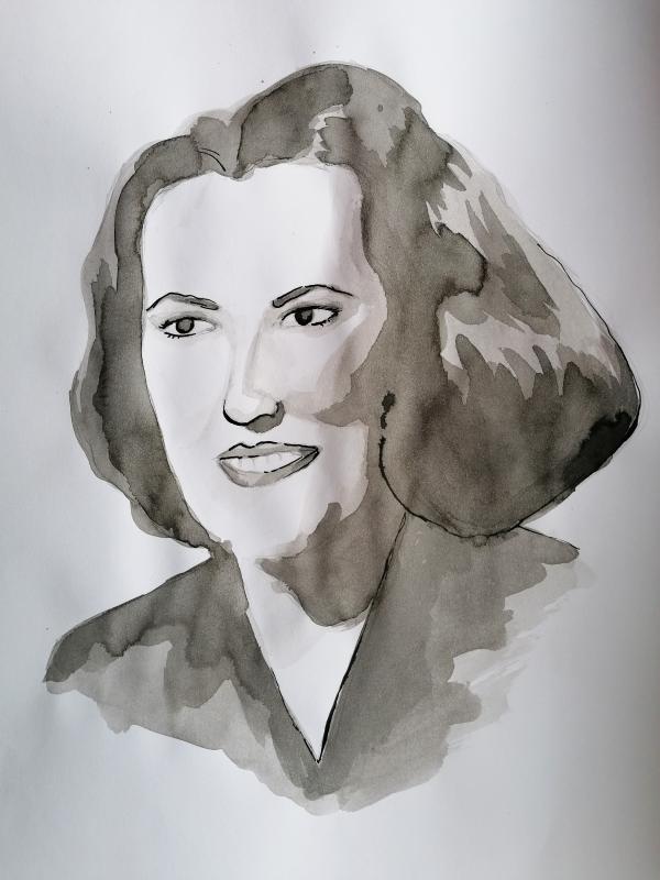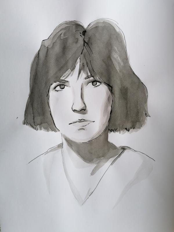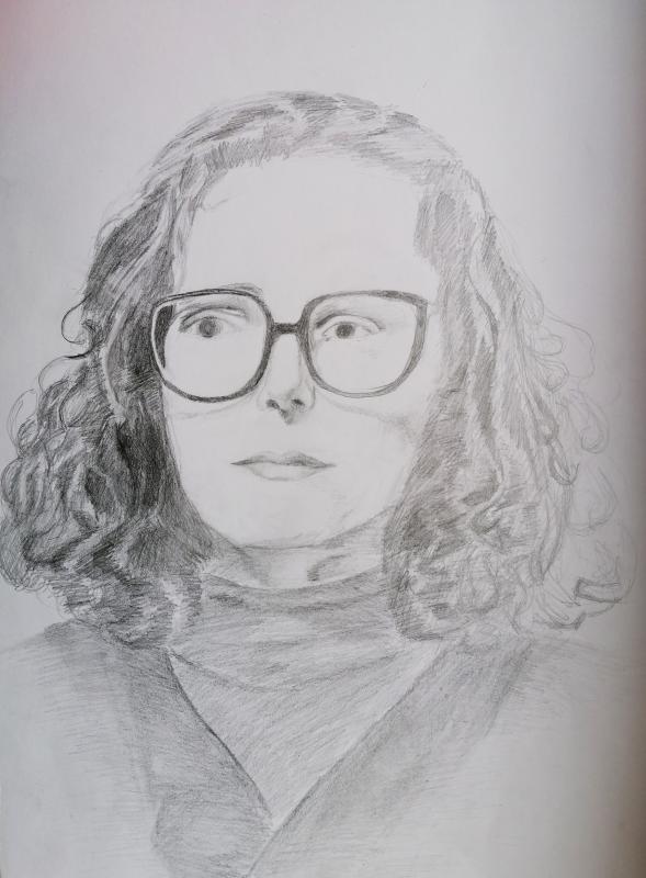 Szalai Sára (9.B) pályázata sorozat: különösen örvendetes, hogy 4 portrét is készített. A három női arc három nagyon különböző karakter az iskola történetének különböző korszakaiból. Sára legjobban sikerült portréja talán Dr. Szabó Endre tanár úr portréja lett. A tussal festett kompozíciók könnyed, leheletfinom felületekkel és határozott kontúrokkal ragadják meg az ábrázolt személyek külső jegyeit és az ábrázoló személyiségét.
