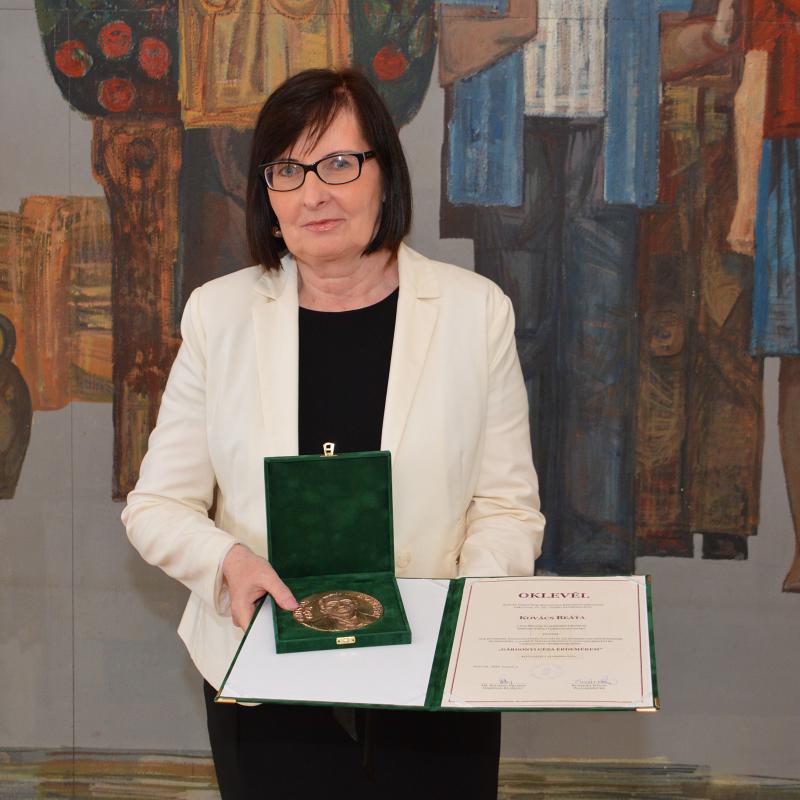 sok évtizedes, kimagasló nyelvtanári és lelkiismeretes osztályfőnöki munkájáért, valamint magas színvonalú vizsgafelkészítő és vizsgáztatói tevékenységéért
