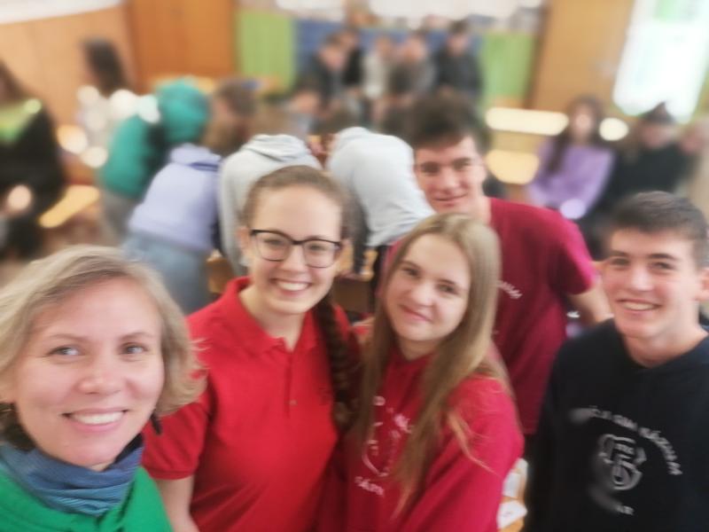 Gimnáziumunkat Grodvaltné Martos Veronika tanárnővel és néhány 11. évfolyamos diákunkkal képviseltük. Hujber Fanni és Boros Gréta a B osztály jellegzetességeiről beszélt, míg Szabó Mátyás és Mesterházy Péter az A osztályban szerzett tapasztalataikról számoltak be. Hárman közülük a Nádasdyba jártak, tehát kicsit „hazatértek”. Mindannyian elmesélték, miért választották a Tinódit, ill. milyen sikereket értek el eddigi gimis éveik alatt.